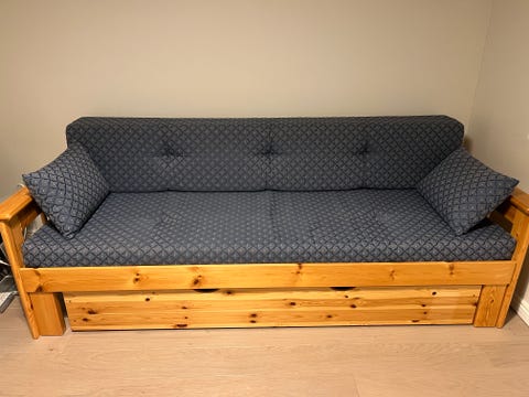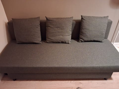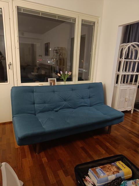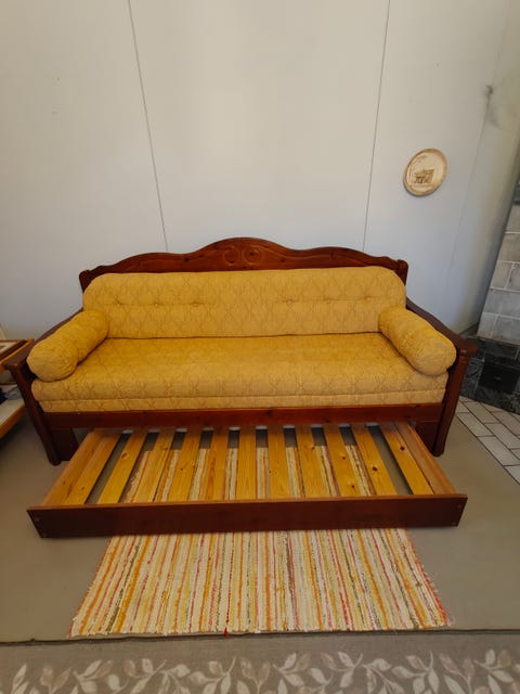 Vuodesohva sopii vieraiden majoitukseen ja omaksi sängyksi pieneen kotiin