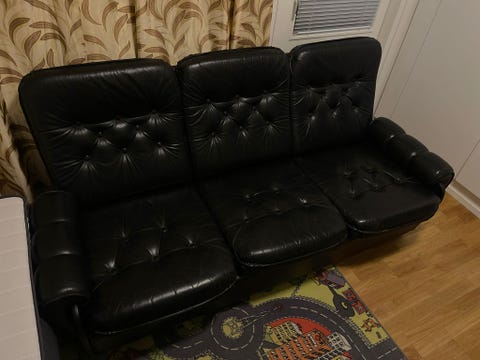 Musta, nahkainen sohvaryhmä