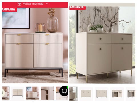 Torista voit löytää arkisia perussenkkejä ja uniikkeja vintage-senkkejä. Molempiin saa piiloon tavaroita ja toisaalta koriste-esineitä kauniisti esille. Käytetty senkki on ekologisempi ja usein edullisempi vaihtoehto, ja käytettynä voit löytää usein persoonallisia tuotteita, joita ei enää kaupasta saa!