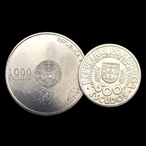100 €Portugali. 2 Silver Coins: 1x 1000 Escudos (Dom Manuel I) + 1x 500 EscudosHelsinki, Keskusta - Etu-Töölö, Uusimaa3 pvCatawikiLisää suosikiksi.