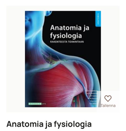 80 €Anatomia ja fysiologia - Lääketiede ja terveys - oppikirjaTampere, Keskussairaala-alue-Kauppi, Pirkanmaa1.12.Lisää suosikiksi.