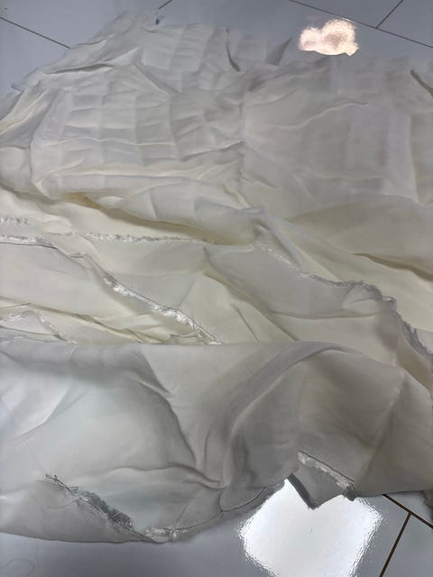 Kaksi kermanväristä kangasta