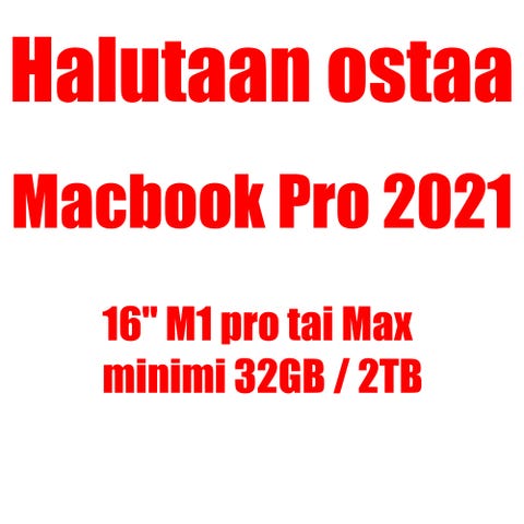 OstetaanHalutaan ostaa MacBook Pro 2021 16" AppleHelsinki, Kamppi - Ruoholahti, Uusimaa4 pvLisää suosikiksi.