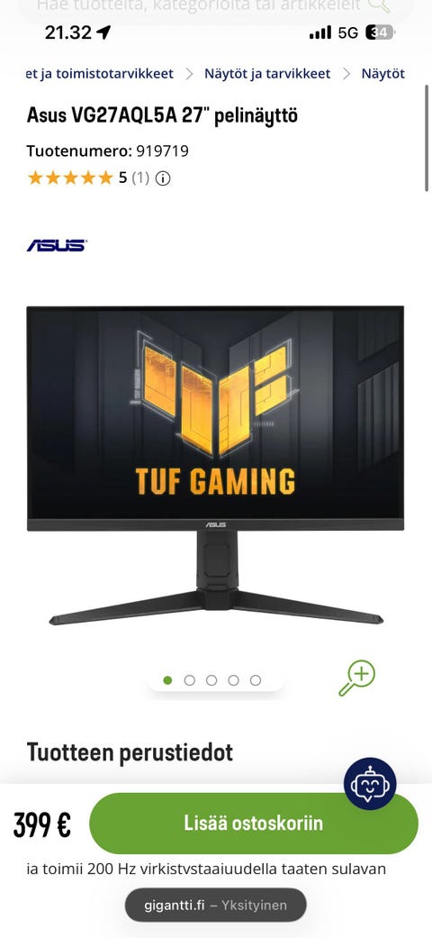 399 €ASUS 31,5" LED - TUF VG32UQA1A -pelinäyttöHelsinki, Sörnäinen, Uusimaa3 pvRenow OutletLisää suosikiksi.