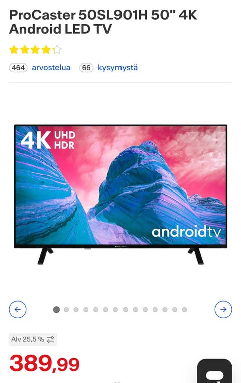 220 €Procaster Android 50-T Smart TV 4K (takuu)Tampere, Tampere Keskus Läntinen, Pirkanmaa1 pvLisää suosikiksi.
