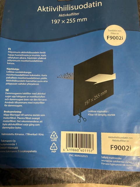 12 €Aktiivihiilisuodatin Lux 1 Royal imuriinJoensuu, Kanervala, Pohjois-Karjala5.6.2025Imuritarvike.fiLisää suosikiksi.