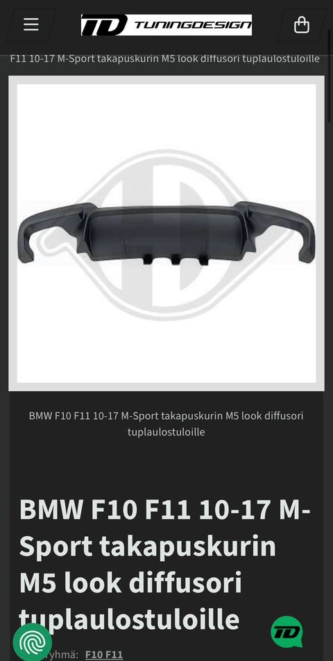 109 €BMW 5-sarja F10/F11 diffuusori takapuskuriinKerava, Pihkaniitty, Uusimaa26.11.2024Underground MotorsportLisää suosikiksi.