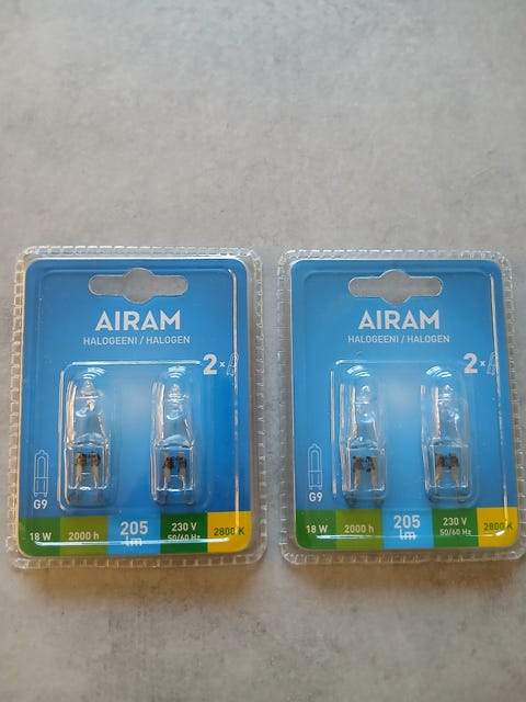10 €4 x Airam-halogeenilamppu G9 / 18W / 205 lm / 2800KTurku, Uittamo, Varsinais-Suomi31.12.2025Osta hetiLiikkeessä oleva kuorma-autoToriDiiliLisää suosikiksi.