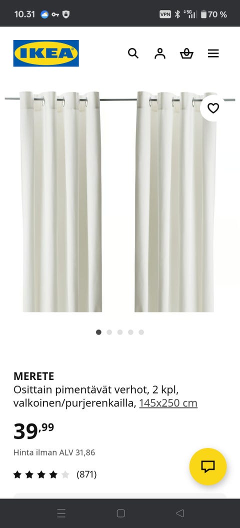 20 €IKEA verhot vaalea beige, läpinäkyvä. IKEAHelsinki, Kontula - Vesala, Uusimaa4 pvLisää suosikiksi.