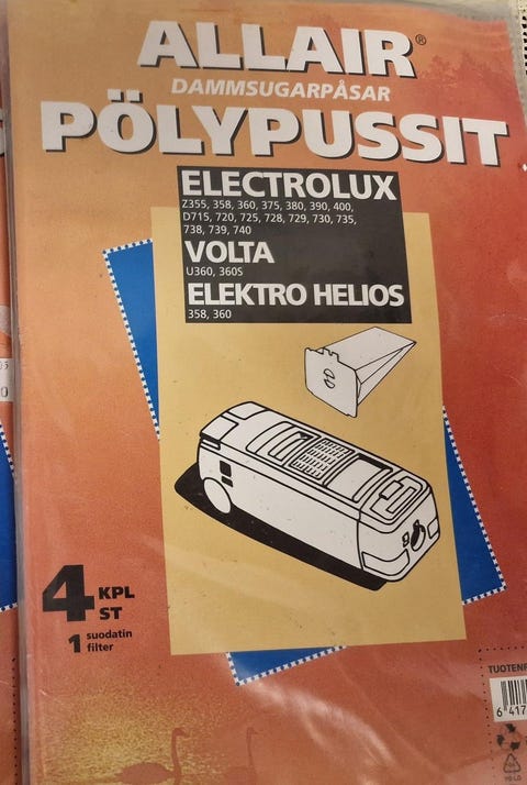 5 €Pölypussit Philips, Volta, Electrolux, Ignis, Nilfisk imuriinJoensuu, Kanervala, Pohjois-Karjala28.3.Imuritarvike.fiLisää suosikiksi.