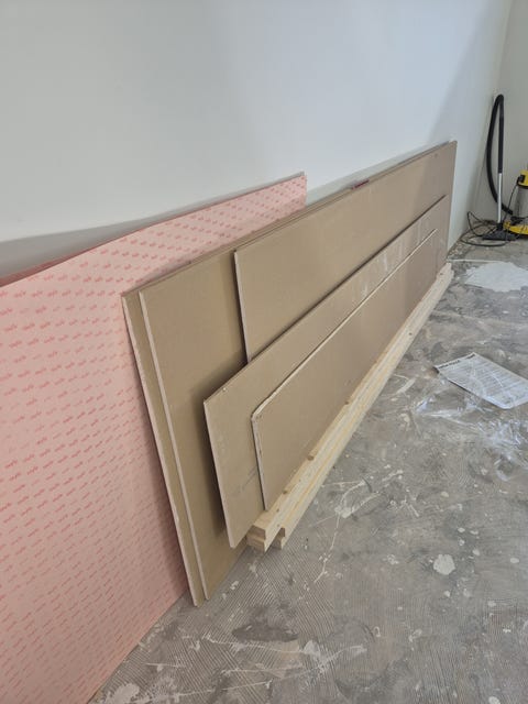 Isoja kipsilevyn paloja