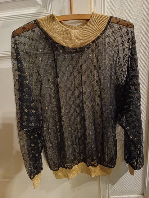 12 €Vintage, juhlapusero, läpinäkyvä, musta-kulta, mitat kuvissa, mm. pikkujouluihinNokia, Nokia Keskus, Pirkanmaa3 pvLisää suosikiksi.