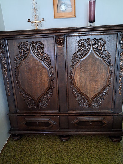 99 €Vanha puinen kaappi koristekaiverruksilla ja metallisilla vedinlenkeilläEspoo, Nihtisilta, Uusimaa4.2.Lisää suosikiksi.