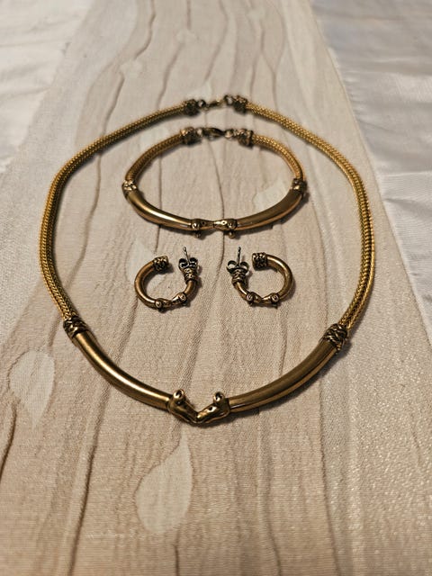 65 €Hirvenpää kaula- ja rannekoru sekä korvakorut, pronssia, Kalevala Koru KalevalaNurmijärvi, Röykkä, Uusimaa7 tLisää suosikiksi.