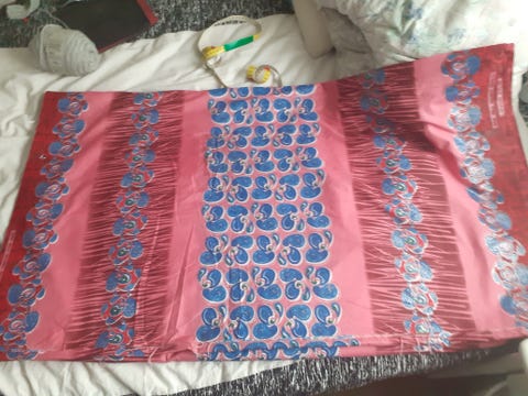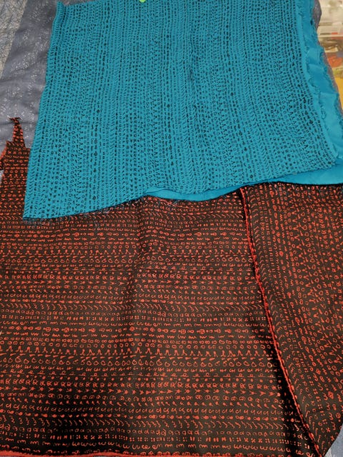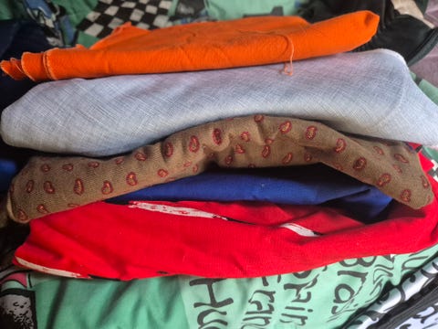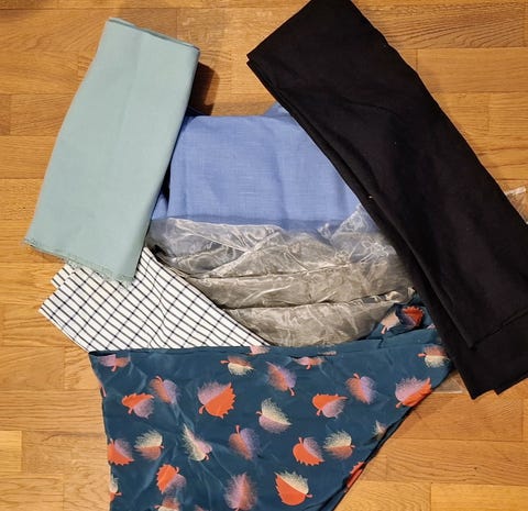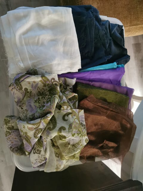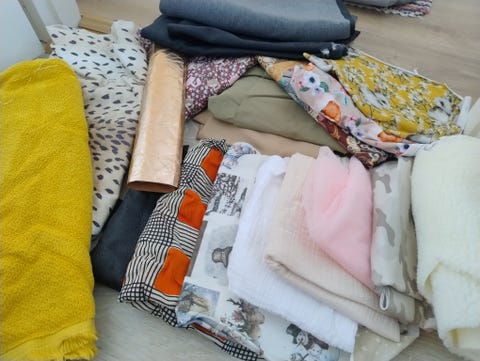 Settinä kasa kankaita/tilkkuja