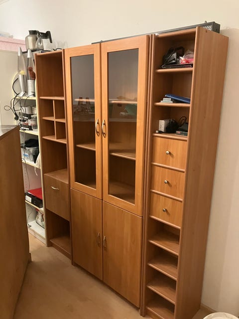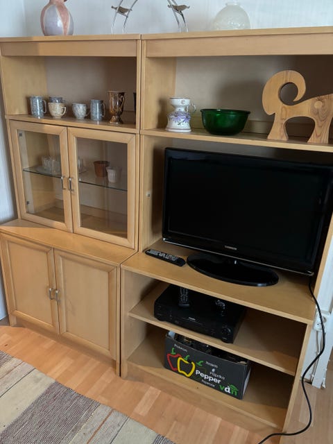 Kirjahylly ja lasivitriini