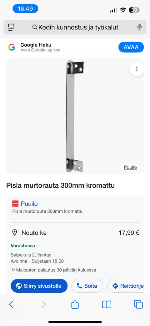 10 €Murtosuojarauta pituus noin 32cm.Nurmijärvi, Klaukkala Keskus, Uusimaa7.9.Osta hetiLiikkeessä oleva kuorma-autoToriDiiliLisää suosikiksi.