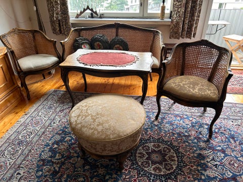 50 €Rokokoo -tyylinen sohvarymä. Sohva, pöytä, 2 tuolia ja rahiHelsinki, Pohjois-Meilahti, Uusimaa6 pvLisää suosikiksi.