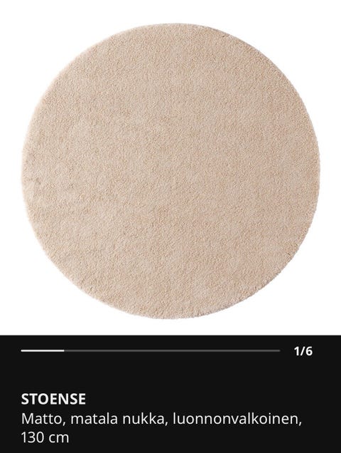 15 €Ikea STOENSE pyöreä matto beige 130 cm IKEASalo, Tupuri-Hähkänä, Varsinais-Suomi3 tLisää suosikiksi.