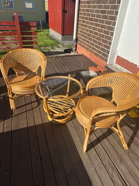 40 €Rottinki terassikalustesetti musta pöytä ja nojatuoliKirkkonummi, Kirkkonummi Keskus, Uusimaa14.9.Lisää suosikiksi.