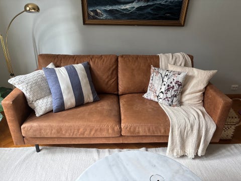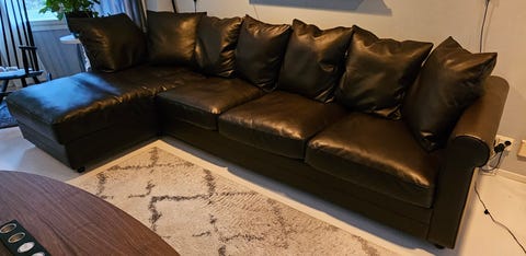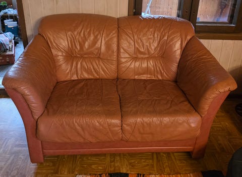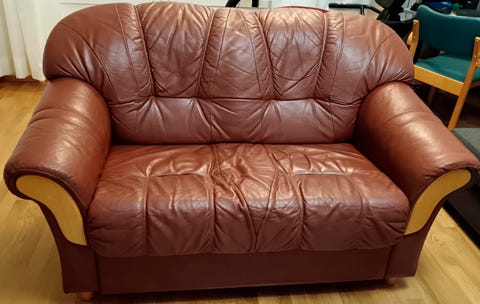 Kolmen istuttava nahkasohva