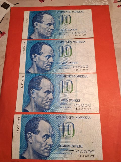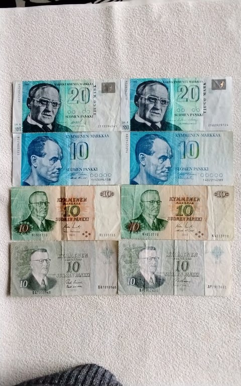 6 €10 markan setelit 2 kpl. 1980 vuodelta,PaasikiviLahti, Keski-Lahti, Päijät-Häme1 pvLisää suosikiksi.