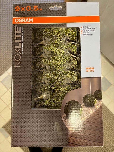 30 €Led-ulkovalaisinsarja Osram Noxlite Garden Spot 9x0,5WTornio, Kirkonmäki, Lappi7.10.Lisää suosikiksi.