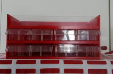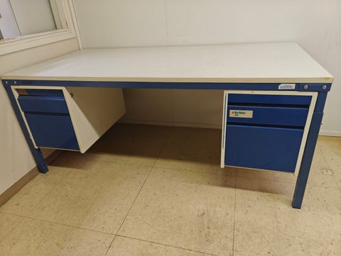 Treston työpöytä hyllyllä