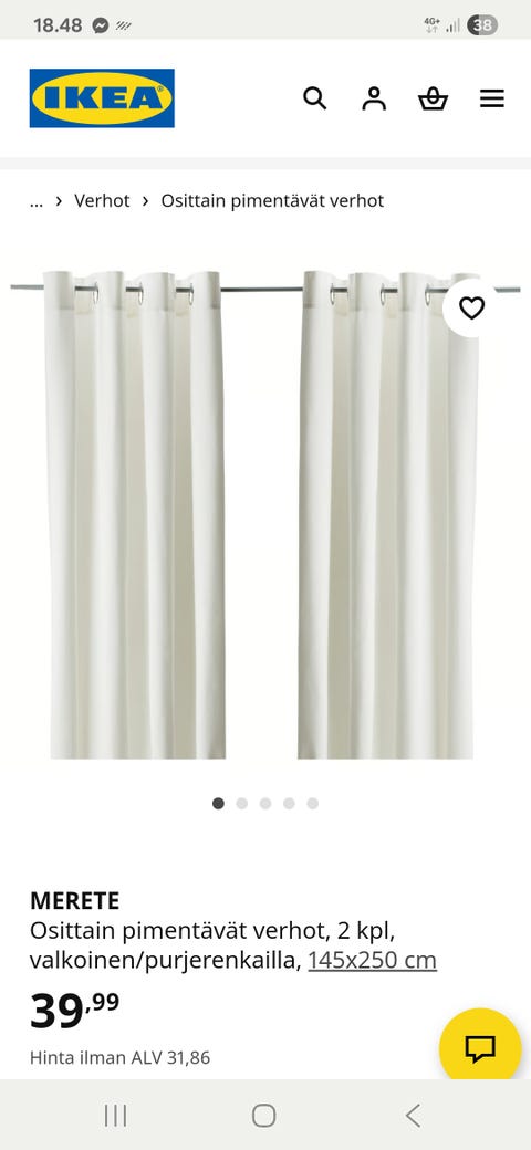 25 €Valkoiset verhot purjerenkailla – pellavan tuntu, Rusta Lina 3+1 kplSipoo, Västerskog, Uusimaa7.9.Lisää suosikiksi.