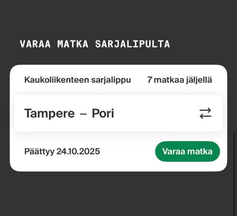 10 €VR opiskelija extra-luokan junalippu Toijala (Akaa) <-->LeppävaaraAkaa, Toijala keskus, Pirkanmaa6 pvLisää suosikiksi.