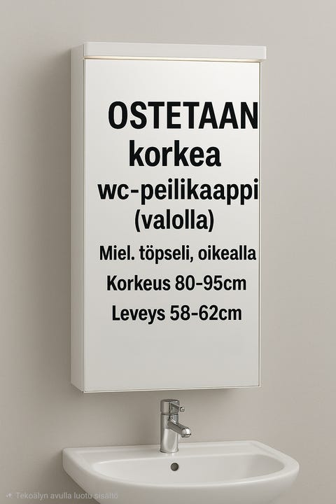 299 €WC kalustesetti peilillä ja valaisimillaRaahe, Pattijoki Keskus, Pohjois-Pohjanmaa13.10.Lisää suosikiksi.
