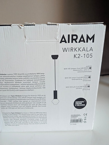 28 €TAPIO WIRKKALA * AIRAM WIR-105 DESIGN ALKUPERÄINEN HEHKULAMPPU 60W KANTA E27Espoo, Tapiola, Uusimaa5.3.Lisää suosikiksi.