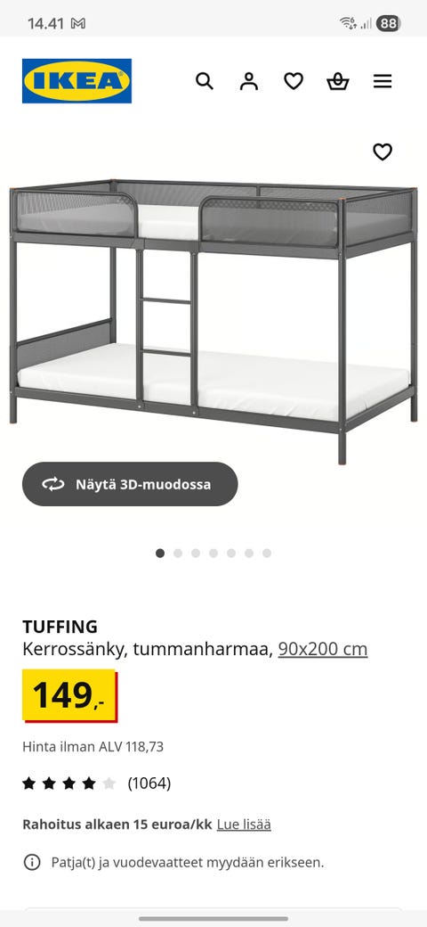 AnnetaanIKEA Pinnasänky Lasten Huonekalut Valkoinen IKEAHelsinki, Jätkäsaari, Uusimaa12 tLisää suosikiksi.