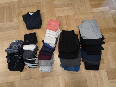 Raskausajan vaatetarpeet voivat yllättää. Vaatteita tarvitaan arkeen, juhlaan, urheiluun ja ulkoiluun - ja alusvaatteet vielä erikseen. Jos raskaus kestää talven yli, voi olla tarpeen hankkia kunnollinen talvitakki. Torista voit löytää käytetyt äitiysvaatteet joka tilanteeseen!