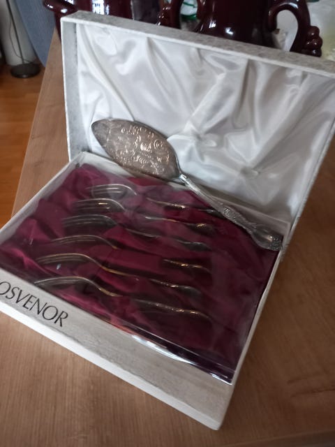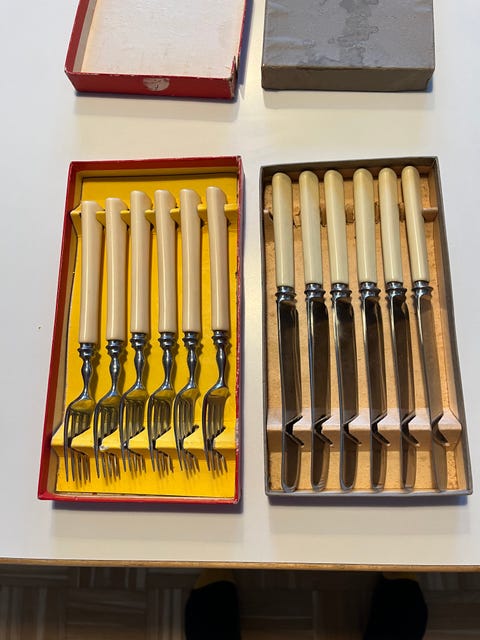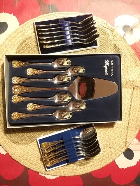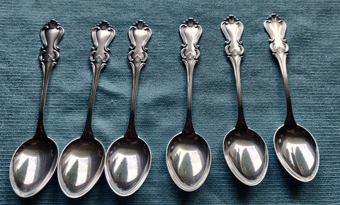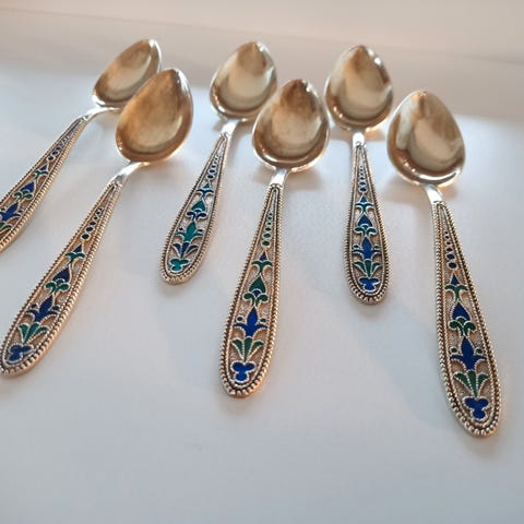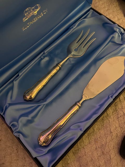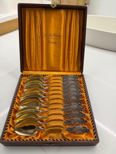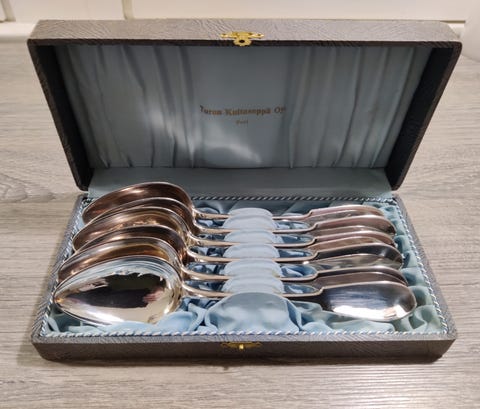 Jos hankit aterimia ja pöytähopeita käytettynä, muistathan että niitä kannattaa kiillottaa säännöllisesti. Netistä löydät runsaasti vinkkejä esimerkiksi hopean puhdistukseen. Toki vanhassa esineessä saa monen mielestä myös näkyä jonkin verran ajan patinaa. Myös oikea säilyttäminen auttaa pitämään vanhat hopeat kiiltävinä: pöytähopeat kannattaa säilyttää joko alkuperäisissä laatikoissa tai esimerkiksi puuvilla- tai minigrip-pusseissa, mieluiten valolta suojattuna.
