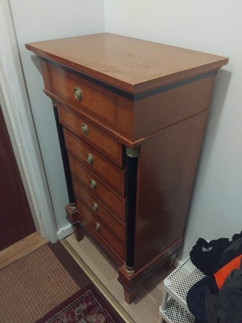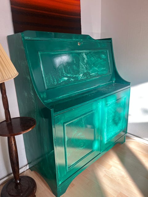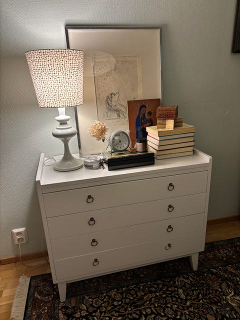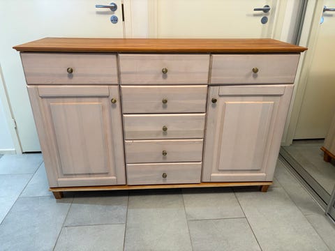 Vanha lipasto voi olla persoonallinen lisä muuten modernisti sisustettuun tilaan. Sama koskee luonnollisesti erilaisia hyllyjä. Käytettyjen kalusteiden tuunaaminen on monelle myös rakas harrastus tai mukava lomaprojekti.