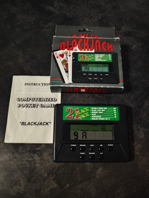 20 €Pocket Blackjack 21 elektroninen taskupeli (vintage)Kaarina, Piispanristi, Varsinais-Suomi51 minLisää suosikiksi.