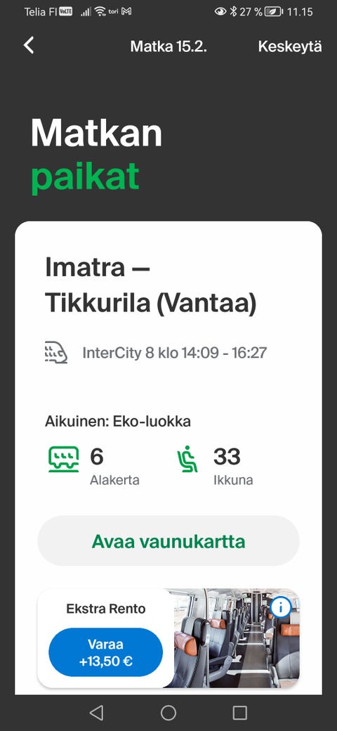 17 €VR-junalippu Pasila-Lappeenranta su 15.2.Lappeenranta, Lappeenranta keskus, Etelä-Karjala1 pvLisää suosikiksi.