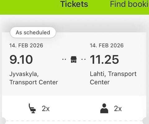 60 €2x junaliput Seinäjoki-Helsinki ma 23.2.2026Seinäjoki, Hyllykallio, Etelä-Pohjanmaa1 pvLisää suosikiksi.