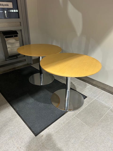 AnnetaanPyöreä pöytä 2 kpl vaaleaa puuta ja metalliaTampere, Härmälä-Rantaperkiö, Pirkanmaa23 minLisää suosikiksi.