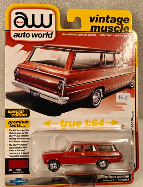 18 €Pienoismalli Chevrolet Nova II Station Wagon 1/64Tampere, Olkahinen-Tasanne, Pirkanmaa26.9.2025Harris Old Cars