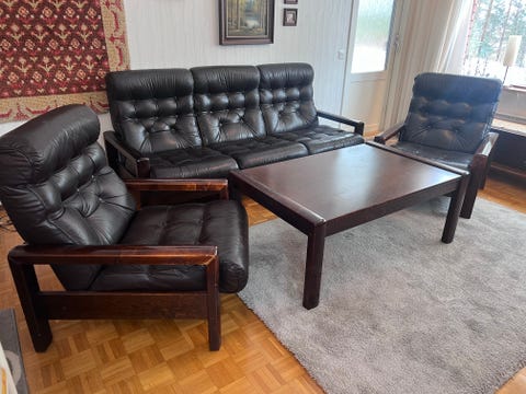 350 €Klassinen mid-century nahkasohvaryhmä ja pöytä / kuljetus onnistuu!Tuusula, Hyrylä, Uusimaa8 tuntia sittenVintagella&Retrolla Second Hand Shop (Sisustuskauppa Murunen)